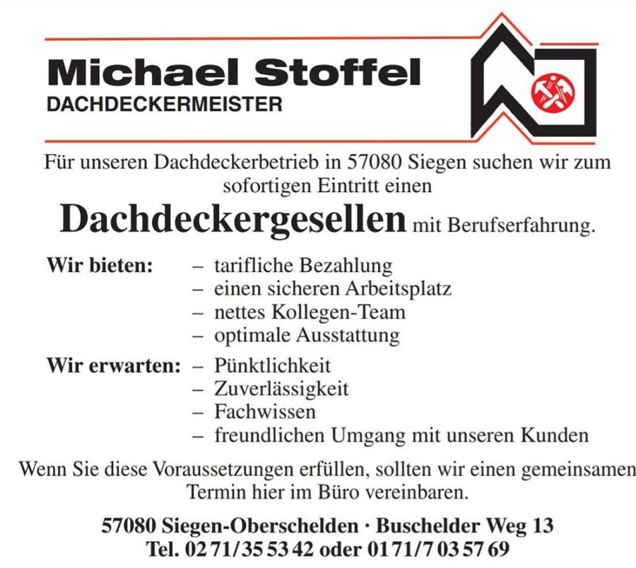 Wir suchen einen Dachdeckergesellen mit Berufserfahrung .....